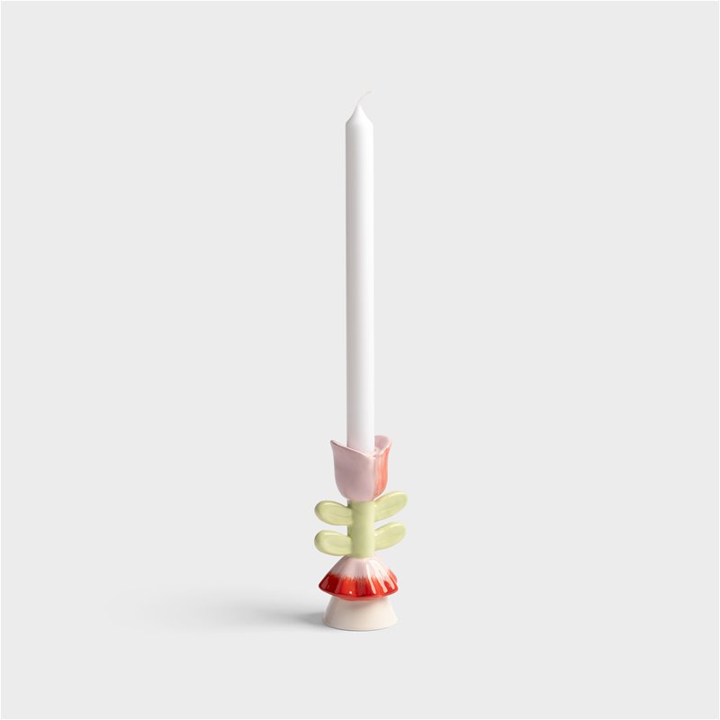 The blume candle holders are inspired by folk-style flower motifs, bringing a touch of summer to your home. Place them together to create a little field of flowers, or use them individually for a playful touch. Each piece is hand-painted, making every candle holder unique.
