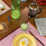 The circus glasses bring a touch of fun to your table. With curved forms and vertical stripes inspired by a circus tent, they sit perfectly in your hand. Ideal for water, juice, or any drink. The glasses are stackable on the matching carafe, making them easy to use and creating a coordinated, colorful table setting.