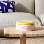 Cut out shapes form a playful pattern on this dolomite jar. The contrasting colour combination and glossy finish create an abstract feeling. The lid with silicone rim keeps the jar airtight so you can store everything nice and fresh.