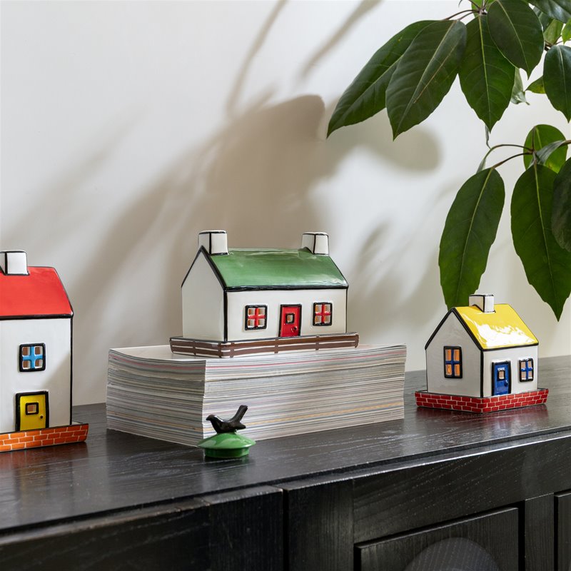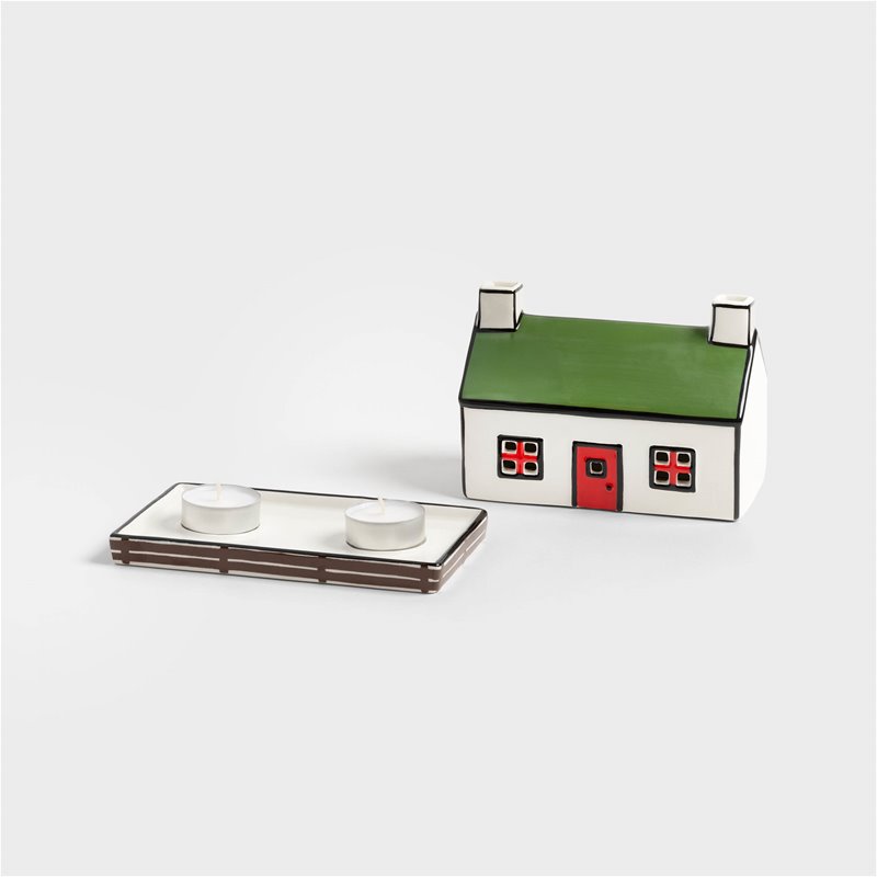 In collaboration with English ceramicist and illustrator Hal Haines, this set of hand-painted tealights brings narrative charm to your interior. Inspired by classic English table settings and Hal’s distinctive visual storytelling, each ceramic piece features bold details and a playful design. Combine multiple tealights and candle holders to build your own whimsical candlelit village.