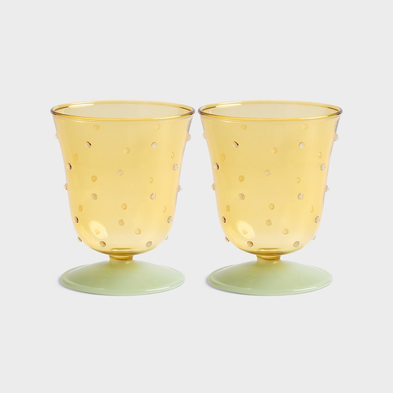 Water glass dot yellow set of 2